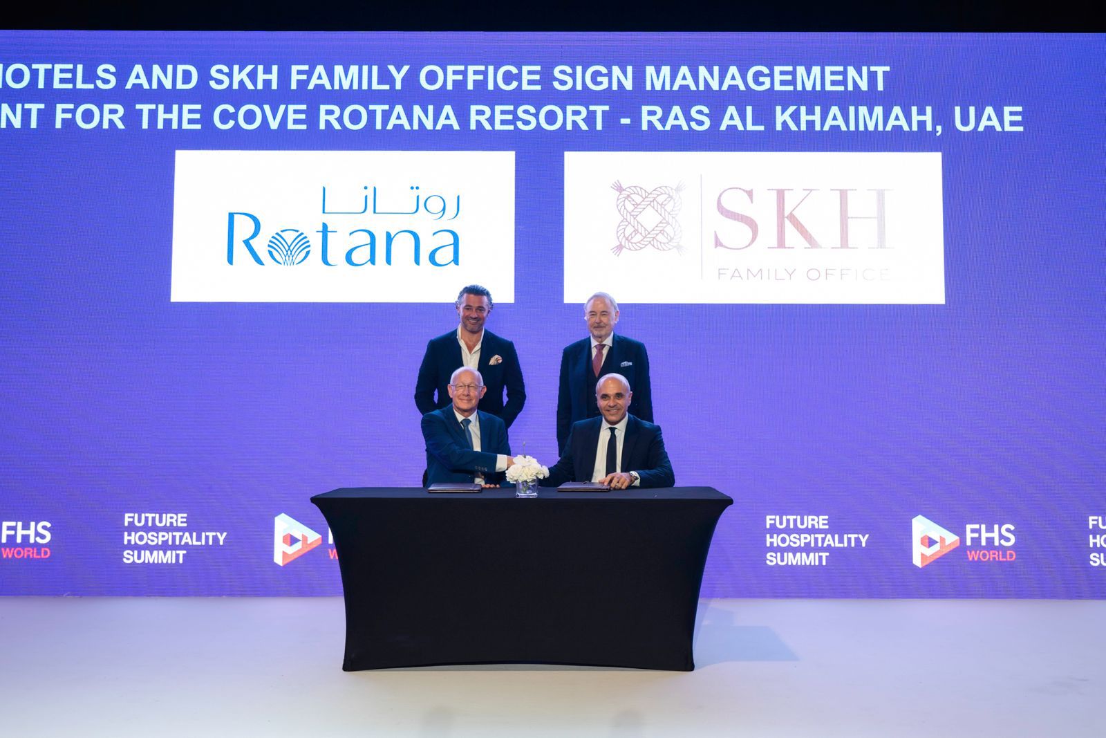 أَضفي الطابع الرسمي على الاتفاقية خلال حفل التوقيع بين السيد صقر كمال حسن، مؤسس ورئيس مجلس إدارة المكتب العائلي الخاص إس كيه إتش، والسيد مكرم الزير، نائب الرئيس للتطوير في شركة روتانا،و ذلك على هامش ﻗﻤﺔ ﻣﺴﺘﻘﺒﻞ اﻟﻀﯿﺎﻓﺔ اﻟﻤﻨﻌﻘﺪ في دبي بحضور نخبة من الشخصيات المميزة و القادة المعنيين بقطاع الضيافة.